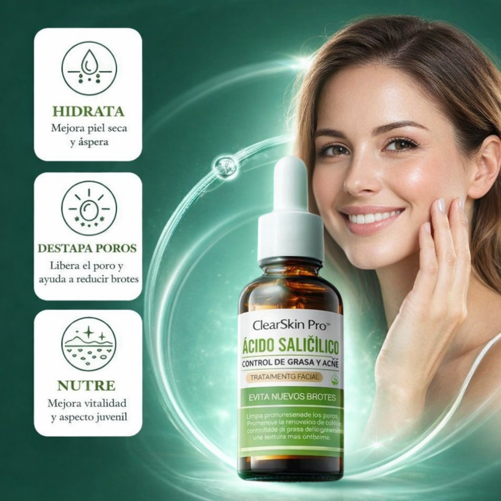 3x1 Suero ClearSkin Pro™ – Sérum de Ácido Salicílico para Acné, Brotes y Poros Obstruidos +🎁 Guía de Seguridad y Autoconfianza GRATIS + Envío Grati