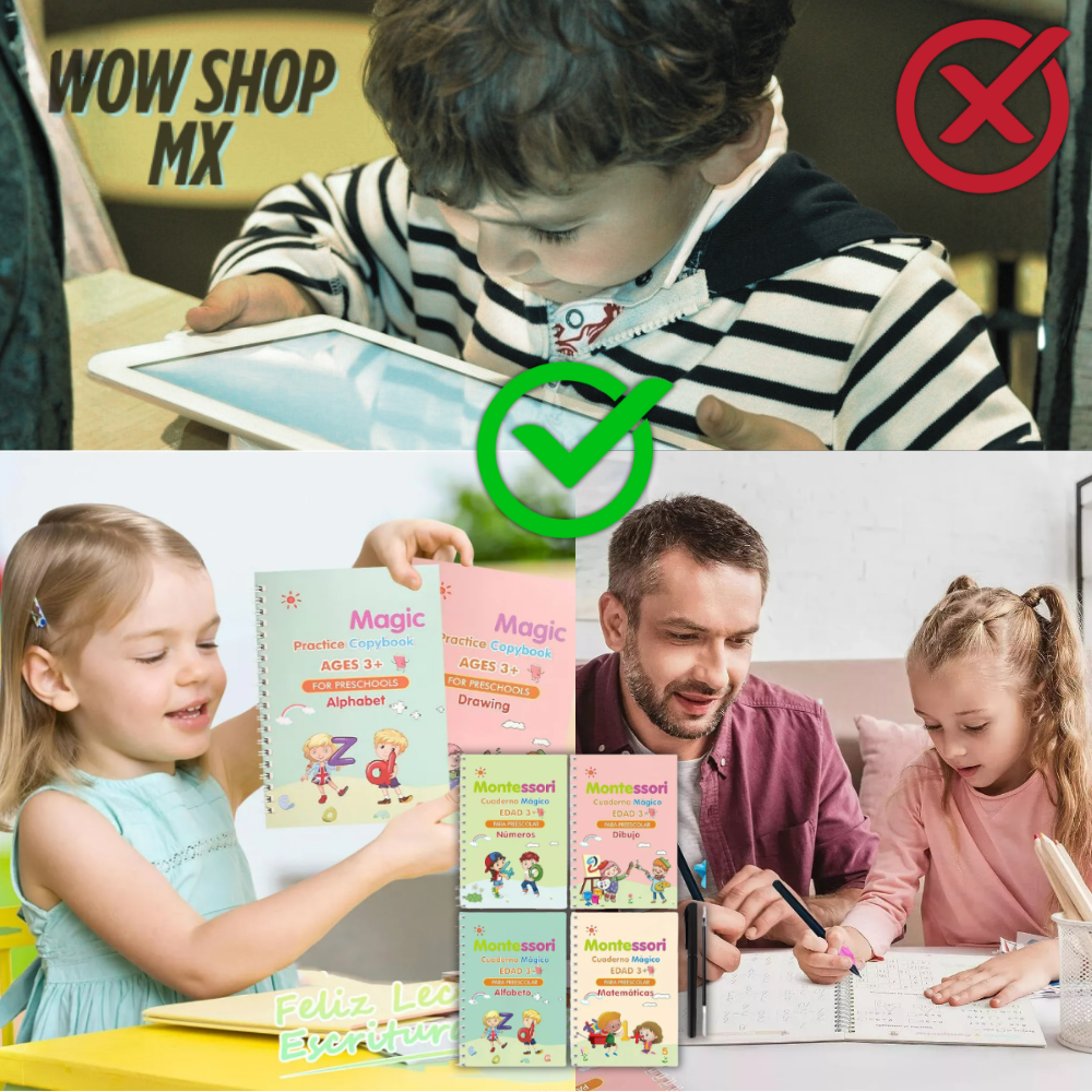 Kit 4 Libros de Caligrafía Reutilizable MagicWrite™ + Corrector de escritura✍️ | Estimula la Creatividad de tus Hijos + 🎁 Guía “21 Actividades para Desconectar a tus Hijos de las Pantallas y Potenciar su Creatividad”+ Envío Gratis